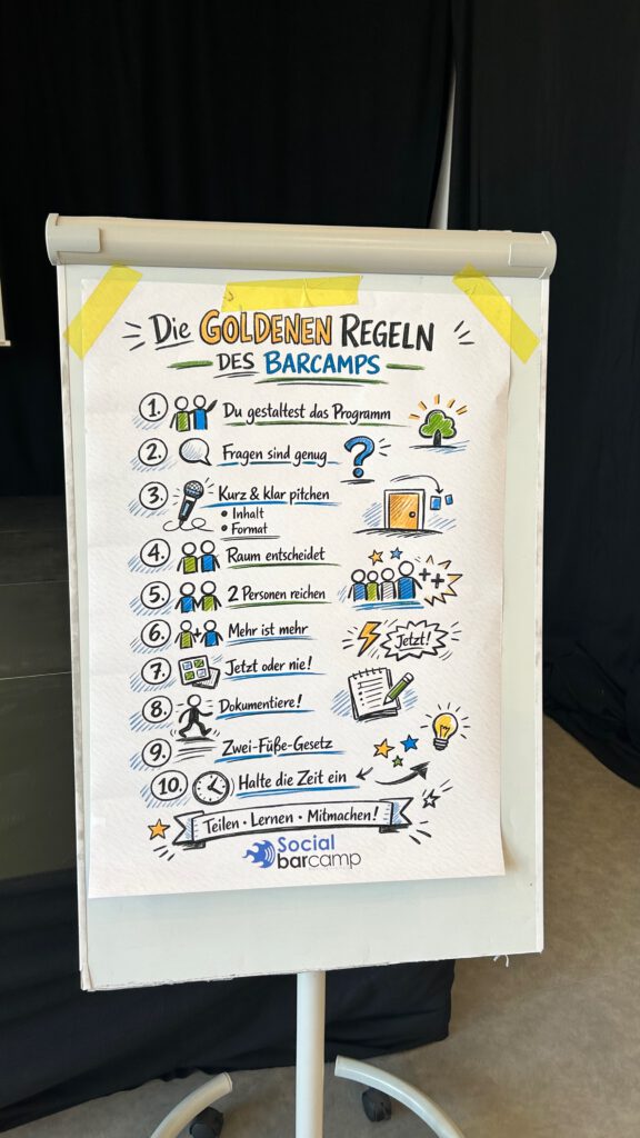 Wer ein Barcamp noch nicht kennt: Das Besondere ist, dass es kein vorgefertigtes Programm gibt. Am Morgen stellen die Teilnehmenden ihre Themen vor, alle stimmen ab, und dann wird der Tag gemeinsam gestaltet. Klingt chaotisch? Funktioniert erstaunlich gut – weil genau das diskutiert wird, was die Menschen wirklich bewegt.